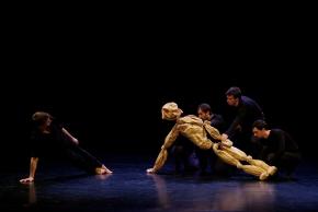 Dans une confrontation directe, un danseur découvre cette étrange figure : elle existe pleinement avec tout son mystère par notre regard et celui du danseur. La marionnette s’anime et amorce quelques pas. Tout prend sens immédiatement : Elle tente d’imiter les gestes du danseur, elle apprend comme un enfant par mimétisme puis fait l’expérience de la liberté et de sa pleine conscience à quatre cerveaux.
