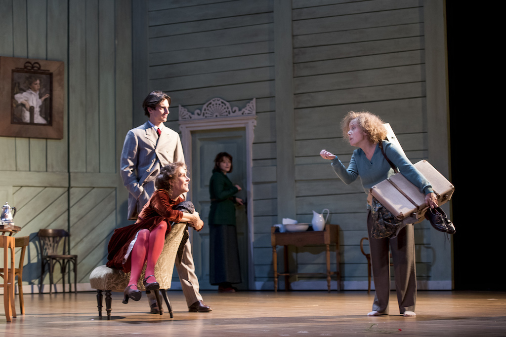 Anton Tchekhov a 44 ans quand il compose sa dernière pièce en 1904. Il se sait fragile, tuberculeux, et s’éteindra peu de temps après dans un sanatorium en Allemagne. On évoque La Cerisaie comme une pièce testamentaire car elle contient tout ce qui dans ses précédentes pièces était en action : l’évolution sociologique et politique de la Russie qui connait les prémices de la révolution, l’essoufflement d’une aristocratie désœuvrée et l’essor d’une bourgeoisie d’affaires revancharde, née de la fin du servage et des moujiks qui vont prendre le pouvoir. Du coté des idées nouvelles, socialisme et nihilisme gagnent les jeunes gens tandis que l’administration des provinces se fait de plus en plus sclérosée. Le metteur en scène a conçu avec Aurélie Maestre une vaste chambre aux murs en lattes de bois vert clair pour figurer l’intérieur et l’extérieur d’une datcha que viennent investir, de retour d’un voyage à Paris, Lioubov Andreïevna et sa fille Ania après cinq ans d’absence.