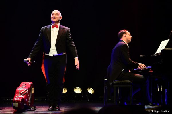 Partir d’un thème et broder. En musique bien sur, mais en nous racontant une histoire. Forcément délirante. Nos amis Belges démarrent, cette fois, sur le récit du mariage royal de leur souverain actuel, avant de bifurquer, sans prévenir, sur Léonard de Vinci et ses inventions. Les meilleurs musiques, allègrement déformées et transformées, sont convoquées pour servir de support à ce récit, comique plus qu’historique, nourri d’une nuée de calembours toujours surprenants et souvent efficaces. Peter Hens n’a pas son pareil pour mélanger délire, rire et virtuosité. Avec lui, le spectateur retombe presque en enfance, tout prêt à écouter une histoire pleine de fantaisie et son ébouriffante transcription musicale, baignée dans un jeu savant de lumière dont il convient de souligner l’efficacité. En duo avec son complice, l’excellent pianiste Bart Van Caenegem, il nous offre les mix les plus savoureux. L’on commence avec Carl Orff et ses « Carmina Burana », l’on enchaîne avec les mélodies martiales de Gustav Holst en passant par Queen ou Jacques Brel, pour n’en citer que quelques-uns. L’ensemble servant de base à toutes les folies que vous allez entendre et les facéties auxquelles vous allez assister.