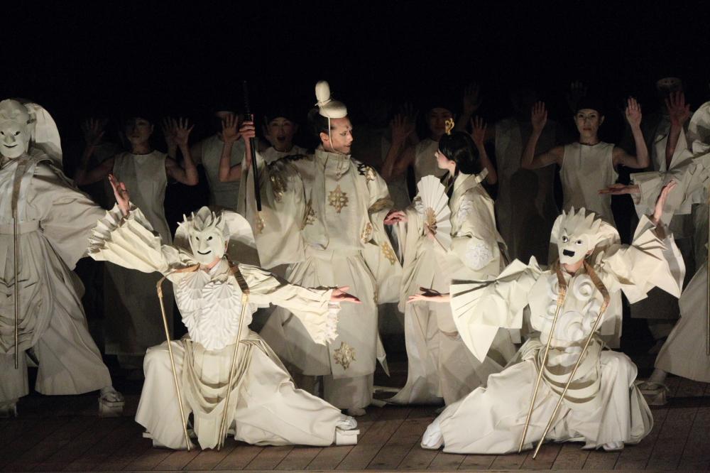 Ce « Mahabharata – Nalacharitam » dure tout de même presque deux heures. Mais c’est surtout son épaisseur visuelle qui fait la grandeur de cette fresque, avec ses dizaines d’acteurs-danseurs. Soumis à l’épure japonaise, le récit indien joue majestueusement sur le contraste du blanc et du noir. Les costumes, créés par Kayo Takahashi, sont inspirés de kimonos comme les Japonais en portèrent, il y a mille ans. Ils peuvent faire apparaître les corps comme des marionnettes. C’est à la fois somptueux et effrayant.
