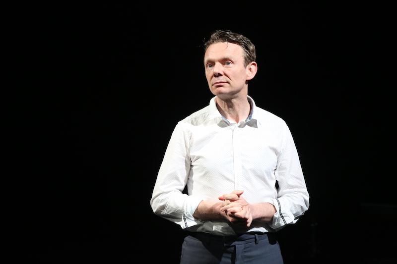 Le comédien Benoit Giros incarne Louvier, ainsi que tous les autres personnages qui gravitent autour de son histoire. Fragile, naviguant à vue entre certitudes et mystères, aveux et trous noirs, il est cet homme auquel on a dérobé son enfance en lui infligeant la plus terrible des violences, son intimité sexuelle. S’emparant d’un texte magnifique, qui alterne la douceur et la crudité des mots en un flux ininterrompu de paroles vitales et sanguines, aussi vivant qu’un battement de cœur, le comédien traverse toutes les étapes de la fiction, des mensonges, de l’histoire familiale et de la soudaine révélation à l’âge adulte avec une palette éblouissante dans le jeu, surfant sur la folie, l’angoisse, l’ironie et l’horreur. Il est tout simplement éblouissant de justesse et de vérité, très subtilement dirigé par Pierre Notte dans un dispositif scénique simplissime. Il faut courir découvrir ce spectacle qui partira ensuite au Festival d’Avignon, pour la grâce d’un acteur éblouissant, pour ce texte si fort et si juste, pour cette magie si puissante.
