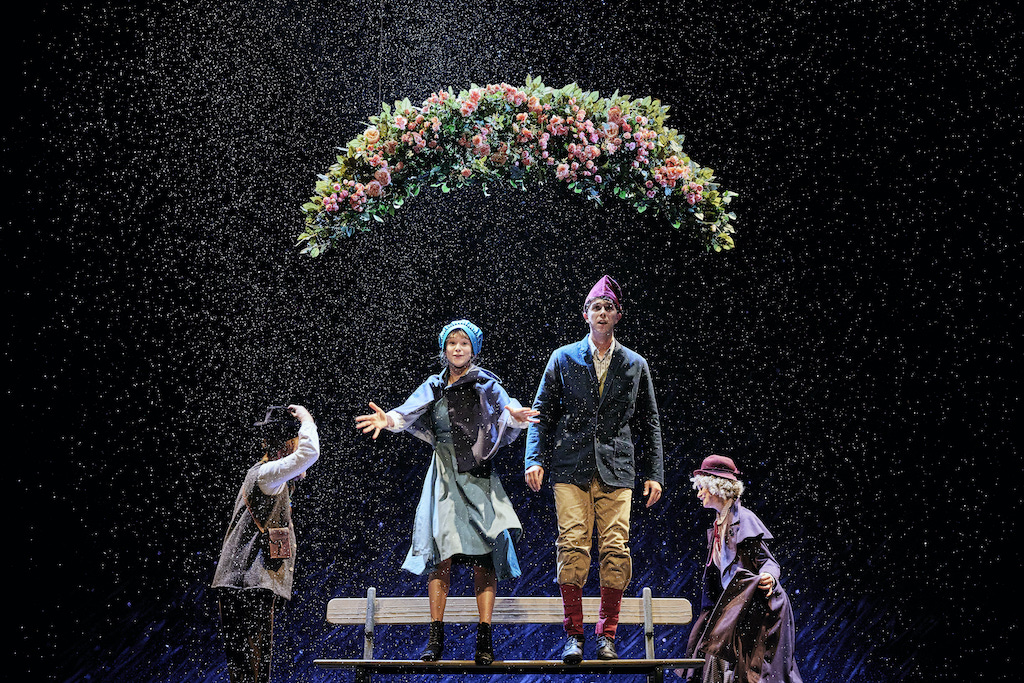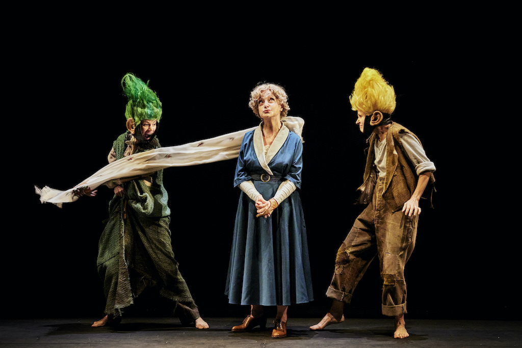 Inspiré de Calderón, mais aussi du Songe d’une nuit d’été de Shakespeare, le spectacle multiplie les références et les œillades, comme les chansons parodiant les comédies musicales de Jacques Demy et Michel Legrand. Et c’est peut-être le bémol d’une adaptation qui à force de vouloir trop signifier, multiplier les symboles, en perd aussi l’émotion toute simple du merveilleux. Léa Lopez, qui campe Gerda, Suliane Brahim en Reine de Neiges et Troll (en alternance avec Elisa Erka), Danièle Lebrun en Grand-mère, Jérôme Pouly en Corneille délicieuse, Julie Cavanna et Adrien Simon qui multiplient habilement les personnages, sont tous formidables. Leur composition est savoureuse et drôle. Mais on perd aussi le fil d’une histoire, certes complexe à la base, mais qu’on aurait souhaité plus accessible.