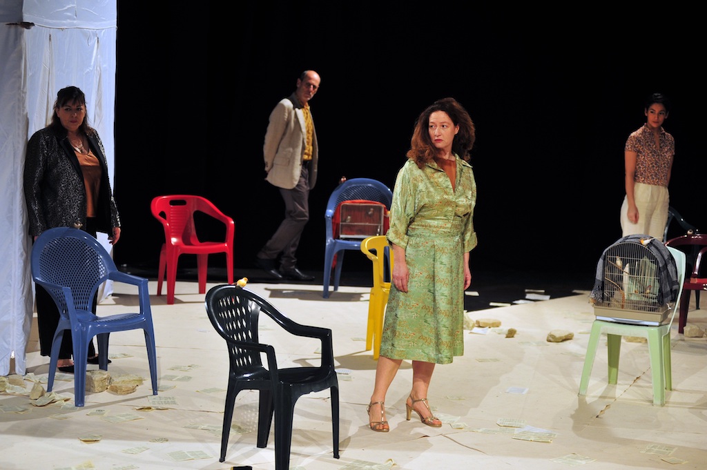 Le spectacle débute autour d’une école située à Jérusalem, où enfants juifs et arabes y partagent un enseignement commun. Le directeur est là, déterminé, qui nous explique son projet depuis quelques années et sa conviction, gorgée d’idéal, qu’il faut donner à tous une éducation égalitaire pour leur permettre de devenir des citoyens d’une même terre. L’école est d’une blancheur immaculée que la belle lumière de Franck Thévenon ensoleille. Et le jeune homme qui vient l’interroger sur ce projet fou, double de l’auteur qui apparaitra dans la deuxième partie, poursuit sa promenade. Il y rencontre une jeune élève palestinienne, un vieux professeur palestinien lui aussi, qui de tout son savoir historique et politique, balaie de manière radicale cette belle utopie, mise à mal depuis le 14 mai 1948, date de reconnaissance par l’ONU de l’Etat d’Israël et début d’une série de violents conflits et d’assassinats, dont ceux d’Yitzhak Rabin et de Yasser Arafat, leaders politiques et artisans, avec les Etats-Unis, des accord de paix d’Oslo en 1994.