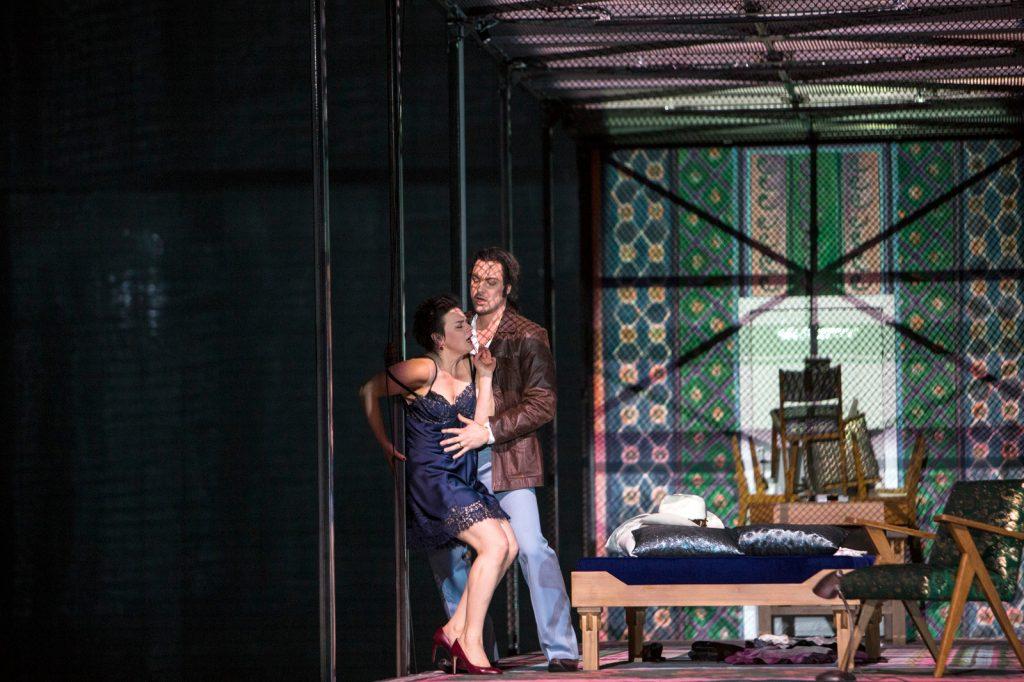 Dès lors, la course vers l’enfer du crime commence pour l’héroïne meurtrie, que le compositeur défend de bout en bout avec une partition éblouissante. Dans l’espace clinique qui agit comme un accélérateur de tensions et de risques, comme une course de survie, les chanteurs défendent à fond leurs personnages. L’amour torride, insensé, de Katerina et de son amant Serguei s’oppose à la tyrannie médiévale exercée par le beau-père Boris, merveilleux Dmitry Ulyanov, un “œil de Moscou” qui fricote avec la cuisinière et verrouille toutes les serrures. Les scènes de sexe, éclairées de rouge, sont elles-mêmes rythmées par le tempo musical, les cors et les tubas font délicieusement écho au coït des personnages tandis que la musique, dirigée somptueusement par le chef Ingo Metzmacher, décline toute la richesse de sa partition luxuriante : tonale parfois, atonale quelquefois, militaire, lyrique, folklorique, pompeuse, romantique, variant ses couleurs et ses genres à l’infini et modelant une action avec une humanité et une vivacité incroyables. Et l’orchestre se fait l’interprète joyeux de cette fête terriblement vivante et forte.