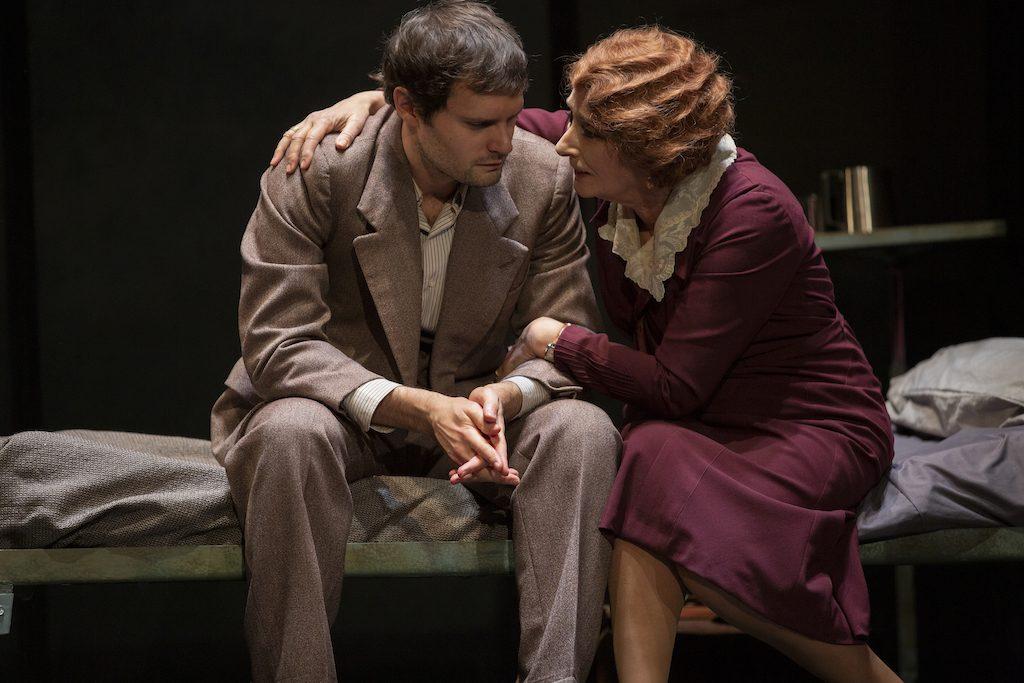 La filiation d’Albert Einstein a peu été évoquée par ses biographes, sans doute en raison de la schizophrénie d’Eduard, le cadet de ses fils. Séparé de sa femme Mileva en 1914, Einstein continua à correspondre avec ses fils, bien que l’état de santé du cadet le désespérait. Il ne s’en remettra jamais, fuyant Berlin pour l’Amérique sans jamais le revoir. La première scène du spectacle nous montre Eduard au début de son internement dans le Burghölzli, l’asile psychiatrique de Zurich où il passera vingt ans. Hugo Becker incarne le fils maudit, d’une sensibilité romantique, qui sombre de la dépression dans la folie violente puis dans la révolte sourde. Dans le décor très sobre d’Antoine Malaquias, un lit de fer pour l’hôpital d’un côté, le bureau bibliothèque d’Einstein de l’autre, le jeune comédien qui joue Eduard est tout simplement saisissant de vérité, prodigieux de sincérité et de douleur. Derrière le voile fin de tulle noir qui adoucit la souffrance, une vie se tord et va être détruite devant nos yeux, à l’heure des cures d’insuline et des électrochocs.