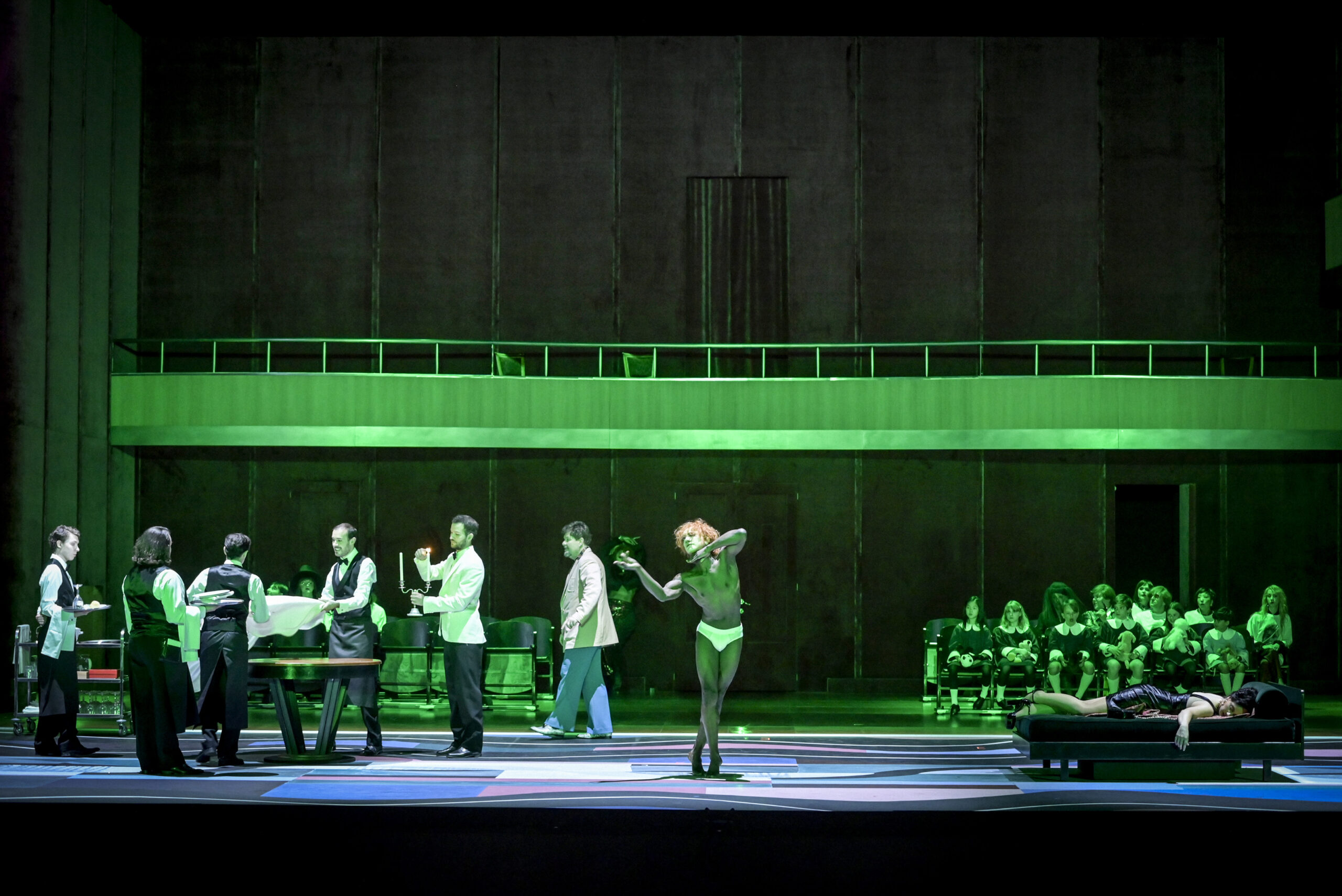 Pourquoi Octavian est soudain dédoublé en trois clones ? Pourquoi ces danses de rue, dans une Vienne aristocratique ? Le burlesque et le mélange des genres fonctionnent à l’arrivée du Baron Ochs, un aristocrate débordant de grossièreté et d’outrance machiste qui hérisse toutes les femmes, mais l’intimité, la tension et le tabou moral des scènes d’amour entre la Maréchale et Octavian, livrées comme au théâtre ou sur un plateau de cinéma, avec caméra et perchiste, tables de maquillage et fauteuils amovibles, souffrent cependant de vérité. Certes, la maîtrise scénique, l’organisation sophistiquée du plateau et la direction d’acteurs sont ici à saluer. Mais on perd vite le fil de l’intrigue et on peine à trouver un axe de compréhension rassurant. D’autant que de faire d’Octavian un être de sexe indéterminé, qui penche plus souvent du côté féminin, modifie l’intrigue.