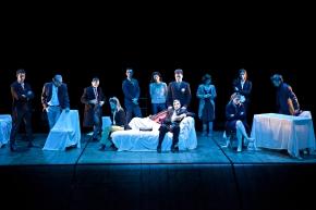 La célébrissime chanson des Pink Floyd Money est reprise comme un refrain lancinant par tous les comédiens, en écho à ces années seventies qui percutent de plein fouet les nôtres, à coups de bulles spéculatives et de crises financières toujours plus grosses. Philippe Demarle, Sarah Karbasnikoff, Charles-Roger Bour ainsi qu’une brochette de jeunes acteurs complètent une distribution épatante, pétillante de fantaisie et pleinement engagée. Les lumières et la scénographie d’Yves Collet ainsi que la musique de Jefferson Lembeye participent à la réussite de ce spectacle réjouissant, démoniaque et terriblement contemporain !