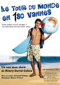 Le Tour du monde en 180 vannes De David-Henry Cohen Mise en scène d’Arnaud Gidoin Avec David-Henry Cohen Le jeudi à 21h30 Tarif : 15 € Réservations : Durée : 1h15 Théâtre Le Lieu M° Cadet |