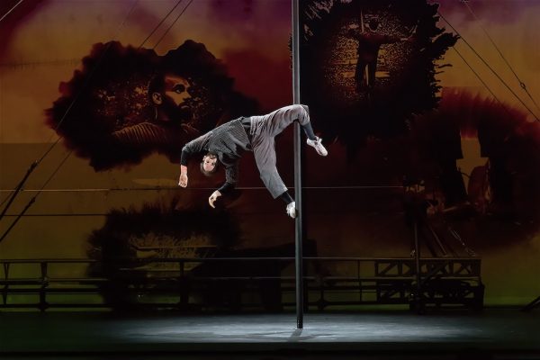 Corps, images, musique, visions et textes dits par les artistes se conjuguent alors, sans une seconde de temps mort, pour fusionner en un superbe moment de jeu dont le physicien Albert Einstein, avec sa théorie de la relativité et le texte « Einstein dans le train » de Conor Wild, est le maître du jeu. La scénographie évolue à vue, grâce aux artistes, et les vidéos de Johnny Ranger qui déploient des images de toute beauté, les lumières d’Eric Champoux sertissent les numéros comme une offrande au public. “La création est une antidote pour passer à travers les sujets les plus sombres” raconte Shana Caroll, créatrice du spectacle, après la mort tragique de son ami Raphaël Cruz, un acrobate et pilier créatif du collectif. Il s’agira donc de voyage, de transit, de séparations déchirantes, d’histoires d’amour et de sommeil réparateur dans un train dont la magie ressemble à nos existences. Avec des voyageurs doués comme des anges qui se donnent corps et âme au spectacle.