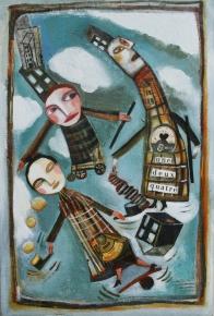 Par ailleurs, le nom de la compagnie les prédestine bien pour une errance exotique : Les Frères Kazamaroffs. Aussi, ils sont partis, en camion, sur les chemins de la Hongrie et de la Sibérie, pour jouer leur spectacle et, au départ, sans projet de création. Mais les rencontres faites sur la route les ont bien inspirés. Celle-ci par exemple : « Sur une route de campagne, un aveugle qui pousse un estropié en fauteuil. La symbiose était parfaite : l’un indique le chemin, l’autre pousse. » Une scène toute beckettienne, et parfaite pour cette branche du cirque contemporain qui ne jure que par la nostalgie de la ferraille rouillée.