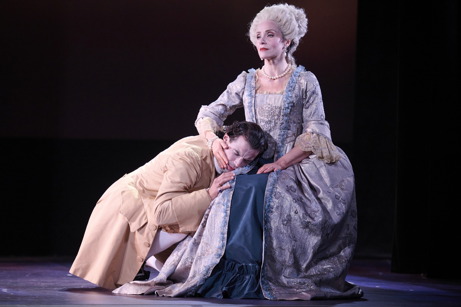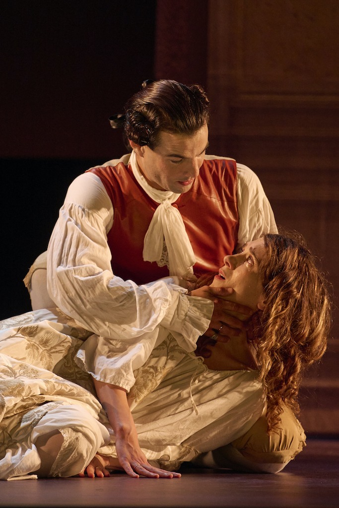 Pour camper le duo des deux prédateurs à l’orgueil démesuré, il a fait appel à deux comédiens épatants qui s’accordent parfaitement. Delphine Depardieu parvient à incarner la Marquise de Merteuil avec une dureté non dépourvue de failles, tenant les rênes de ses intrigues secrètes avec la grâce d’une panthère lâchée dans la jungle des désirs. Valentin de Carbonnières est plus que parfait dans le rôle de Valmont, visage poudré et regard brûlant de loup, prêt à sauter et à se saisir de tout ce qui frémit devant ses yeux. Dans le rôle de Madame de Tourvel, qui sera la première victime de ce machiavélique plan de guerre, Salomé Villiers est d’une bouleversante humanité. Excellents également, la toute jeune Marjorie Dubus campe Cécile de Volanges, jeune vierge sacrifiée sur l’autel du libertinage, Michèle André nous régale de sa présence rassurante et chaleureuse, pas dupe dans le rôle de la tante de Valmont, tandis que Pierre Devaux et Guillaume de Saint Sernin interprètent avec talent les rôles du chevalier et du domestique. Les costumes élégants de David Belougou, les lumières de Denis Koransky, les projections légères de Jean-Michel Adam, avec le judicieux florilège musical de Bernard Vallery, participent à la réussite de ce spectacle qui ne cède jamais à la facilité vulgaire. Les mots et les acteurs sont rois, dans une mise en scène finement stylisée, destinée à tous les publics.