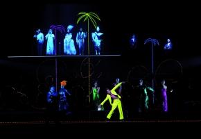 Porté par une troupe d’acteurs noirs époustouflants, voici un spectacle flamboyant et cruel qui interroge le spectateur sur la question de la soumission et du racisme. «Nous sommes ce que l’on veut que nous soyons, nous le serons jusqu’au bout, absurdement » rappelle Archibald, le metteur en scène de la troupe des Nègres. Qu’est-ce qu’être un Noir, interroge l’écrivain et dramaturge jean Genet en 1958 en écrivent sa pièce qu’il qualifie de « clownerie ». L’histoire ? Le conflit ? Il n’y en a pas vraiment. La pièce ressemble à une série de poupées russes emboitées les unes dans les autres, mises en abîme successives de fausses vérités et de vrais mensonges. Comme chaque soir, treize comédiens noirs répètent comme une cérémonie rituelle le viol et le meurtre d’une femme blanche. Ils sont divisés en deux groupes, en haut ceux qui portent un masque blanc et qui figurent la Cour blanche qui doit juger, en bas ceux qui ont violé et tué. Bien sûr, rien ne se déroule dans le calme et plusieurs bagarres finissent en foire d’empoigne où les masques blancs se font exécuter. C’est Luc Bondy, le directeur de l’Odéon, qui a demandé au grand Bob Wilson de monter la pièce qui fut présentée en 1961 à New York. L’Américain Bob Wilson appréhende l’oeuvre avec son propre vocabulaire. Non pas en démontant et en illustrant le texte, mais en l’imaginant en images et en lumières, comme une magnifique parade de cabaret jazz ou la superficialité la plus tapageuse rejoindrait la vérité la plus crue. Ce qui se produit sur la scène est magnifique. Après un prologue muet qui fait défiler les acteurs, dans une quasi immobilité, sous une pétarade de coups de feu et devant un mur d’habitation Dogon, nous sommes projetés dans un ailleurs stylisé, nuit bleue aux palmiers en néons abstraits, guirlandes fluorescentes pour un cabaret à deux niveaux où le maître de cérémonie, Archibald, affiche le sourire efficace d’un publicitaire aux dents écarlates. Le saxophone vibre de puissants aigus, des comédiens sculpturaux, gainés dans des costumes aux couleurs éclatantes, jouent, chantent et dansent avec un égal talent. Les filles, déesses au corps d’acier, portent des robes de satin magique qui en font des princesses ténébreuses et coquines. Hélène Kuttner Visuels ©Lucie Jansch |