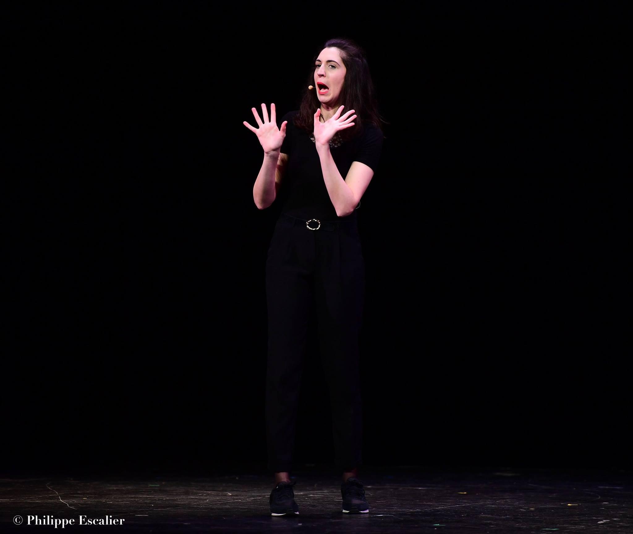 La soirée s’est poursuivie avec la scène cynique de la drôlissime Marie Nègre, qui a habilement mêlé terrorisme et communication. Le désinvolte Raphaël Lëaphar nous a ensuite régalés d’un sketch sur les bobos. Étienne Bianco a fait des merveilles de poésie et de langage en faisant vivre des objets du quotidien. Puis, la salle a concentré toute son attention sur les paroles d’Anne-Sophie Denis, qui a présenté un texte engagé sur les violences conjugales : l’émotion était palpable, le temps suspendu. Quant à l’affable Clément Julliard, et sa chocolatine empoisonnée, il nous a replongés avec drôlerie dans l’univers de l’enfance et ses terribles mensonges. Enfin, l’ingénieuse Stéphanie Paliès a conclu la soirée dans un véritable numéro de clown sur la thématique de l’entretien d’embauche.