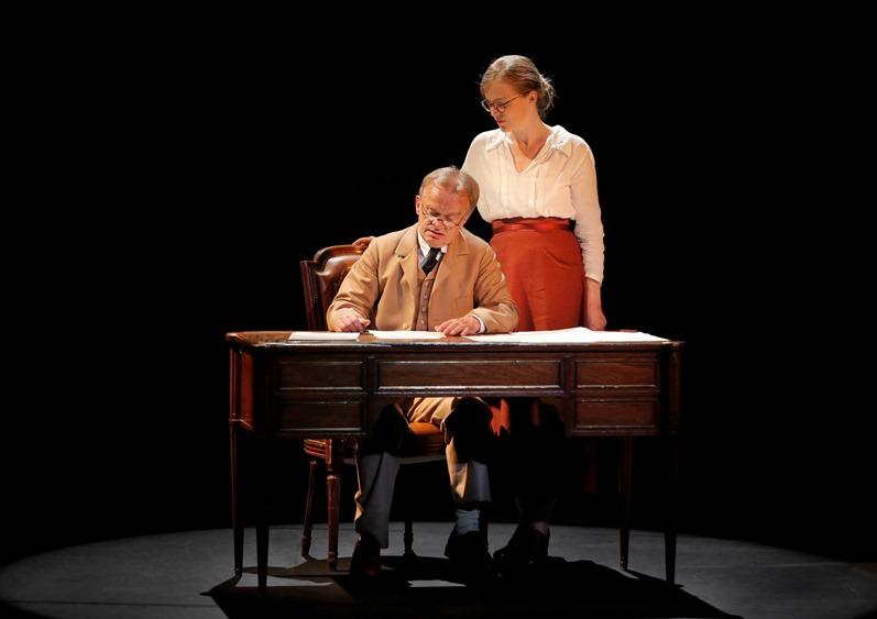 Dominique Pinon dans le rôle de l’écrivain est à son bureau, vêtu d’un costume trois pièces. Il saisit finement l’esprit de Kafka et il en dégage la complexité, les excès d’effroi, l’humour et la conviction d’être peu adapté à son environnement. Sobre et riche dans son interprétation, il maintient l’attention du public avec une palette souple et modulée. À ses côtés, Isabelle Carré interprète Felice, qui reçoit les lettres et les lit. Elle n’est pas enflammée mais enfin elle semble être une réceptionnaire d’humeur légère et facile. Habillée négligemment, constamment déchaussée, lunettes sur le nez, elle n’a pas durant les lectures le sursaut de séduction qu’une amoureuse, même à distance, peut à la fois ressentir et afficher, et elle n’est visiblement pas de celles qui comprendront pleinement l’artiste.