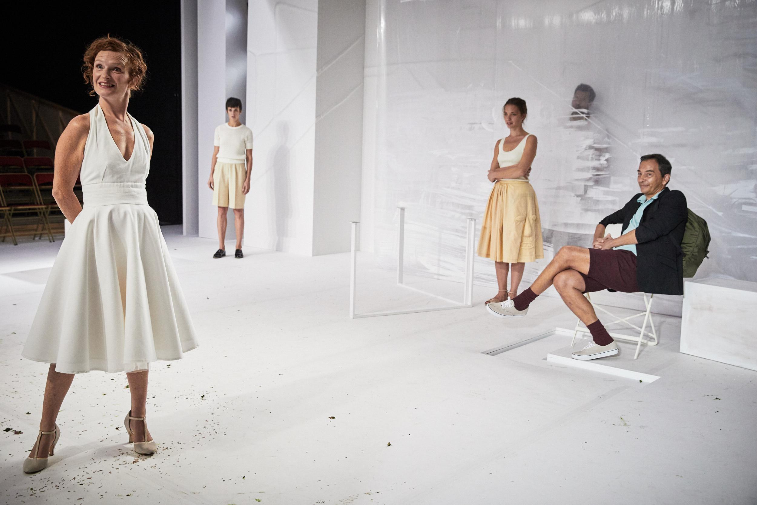 Dans un décor tout blanc, baigné de lumière, mais dont les contours sont des toiles de papier translucide, griffé de traces, les comédiens déboulent dans des vêtements aériens, plein de fantaisie. Le metteur en scène a déjà cassé les codes du classicisme et c’est tant mieux, en impulsant un souffle de fraîcheur, de spontanéité chez ces jeunes gens qui jouent dans une cour où les sentiments, les émotions sont à vif comme dans des jeux d’enfants. A l’âge où ces jeunes gens se fiançaient selon des alliances de classe et d’intérêt, voici une jeune comtesse qui n’en veut faire qu’à sa tête, et s’émancipe de sa relation trop normée, trop confortable, avec son fiancé Dorante. Féministe avant l’heure ? Don Juan en jupon ? Précieuse, coquette ? La jeune comédienne qui l’incarne possède une grâce et une candeur totalement intemporelles, justes et graves à la fois, qui donnent au personnage de la Comtesse toute la vérité d’une gamine obsédée par ses propres désirs, suffoquant dans un monde trop réglé et des certitudes trop évidentes.