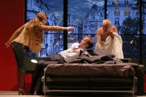 Les acteurs et la mise en scène : Une composition en or massif pour François Berléand, royal dans l’avocat tout nu et étranger à lui-même. Il parvient, la taille ceinte d’une serviette de bain avec une allure d’empereur romain, à captiver l’auditoire et à le rendre compatissant vis-à-vis de sa situation désespérée. À ses côtés, Isabelle Gélinas, sa femme ostéopathe, et Sébastien Thiéry, qui joue le rôle du faux amant, sont parfaits dans la mise en scène intelligente de Ladislas Chollat.