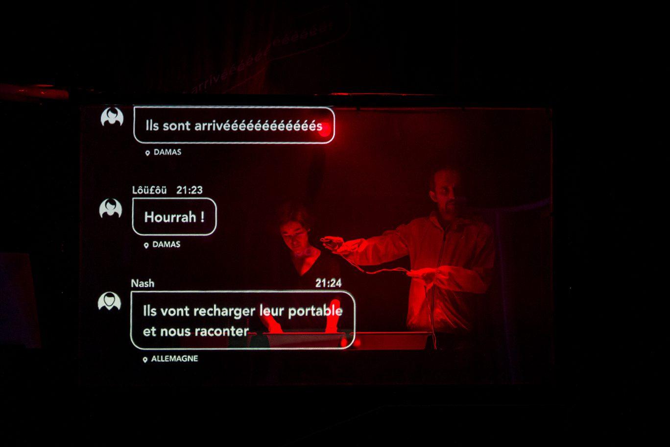 Dana a 24 ans lorsqu’elle décide de partir de Syrie avec son beau-frère Kholio de Damas. Tous deux diplômés, elle d’un master d’anglais, lui de droit, ils partent pour vivre. Nash, le frère de Dana les attend en Allemagne. Ils communiquent avec WhatsApp pour garder les liens fondamentaux avec leur famille : c’est à partir de cette conversation que tout se joue, se photographie, se met en lumière, en musique. Les 203 captures d’écran de leurs échanges en arabe expriment angoisses et espoirs. Et nous touchent.