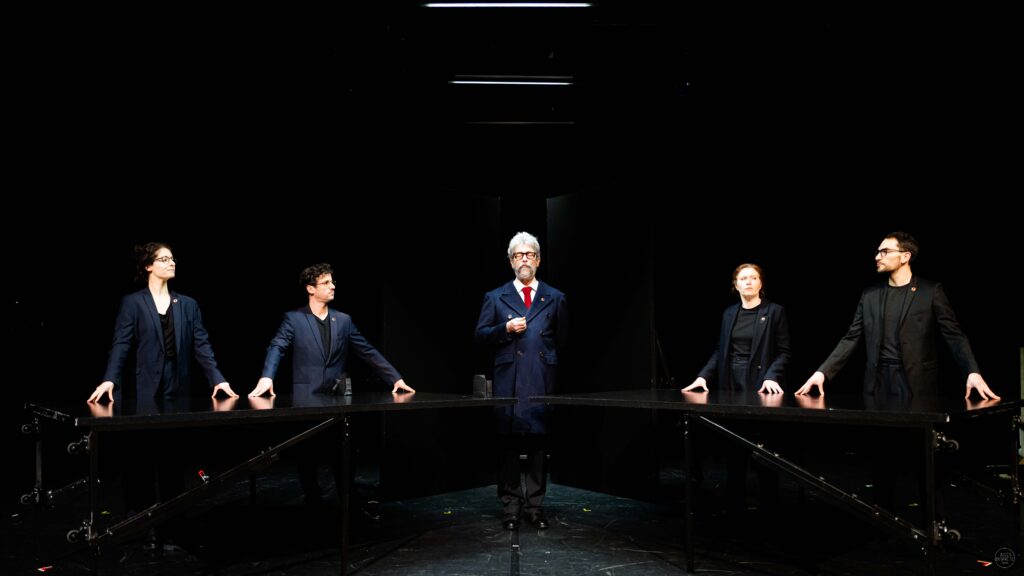 Après “Coupures”, leur dernière création, dédiée au désastre écologique, Samuel Valensi et Paul-Eloi Forget reviennent au Théâtre de Belleville pour leur dernière comédie, l’histoire d’une usine délocalisée qui devient le théâtre de cyniques tractations. Le monde du travail, le syndicalisme, les cabinets ministériels et les cadres voraces des fonds d’investissement sont les champs de mines explosives où se débat la joyeuse troupe de comédiens : réjouissant.