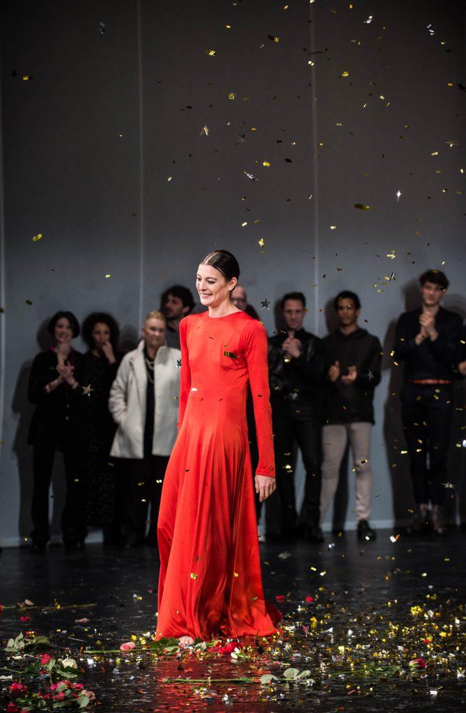 Elle a même pu s’asseoir quelques minutes en bord de scène, a pu jouer avec son fils de 5 ans, sous cette pluie de paillettes et sur un tapis de roses. Et on a pu sentir qu’elle ne regarde pas seulement en arrière, mais aussi vers l’avant. Et elle a accueilli sur le plateau tant de personnalités de la danse qui l’ont accompagnée ou créé des rôles pour elle : Carolyn Carlson, Pierre Lacotte côté chorégraphes, Aurélie Dupont, Brigitte Lefèvre comme ancienne directrice de la danse, Dominique Mercy, ancien « Étoile » de Pina Bausch qui codirigea les répétitions d’Orphée et Eurydice et tant d’autres… Il n’y avait là que bonheur et légèreté, comme pour une vraie célébration de la vie, après cette tragédie bauschienne si mélancolique.