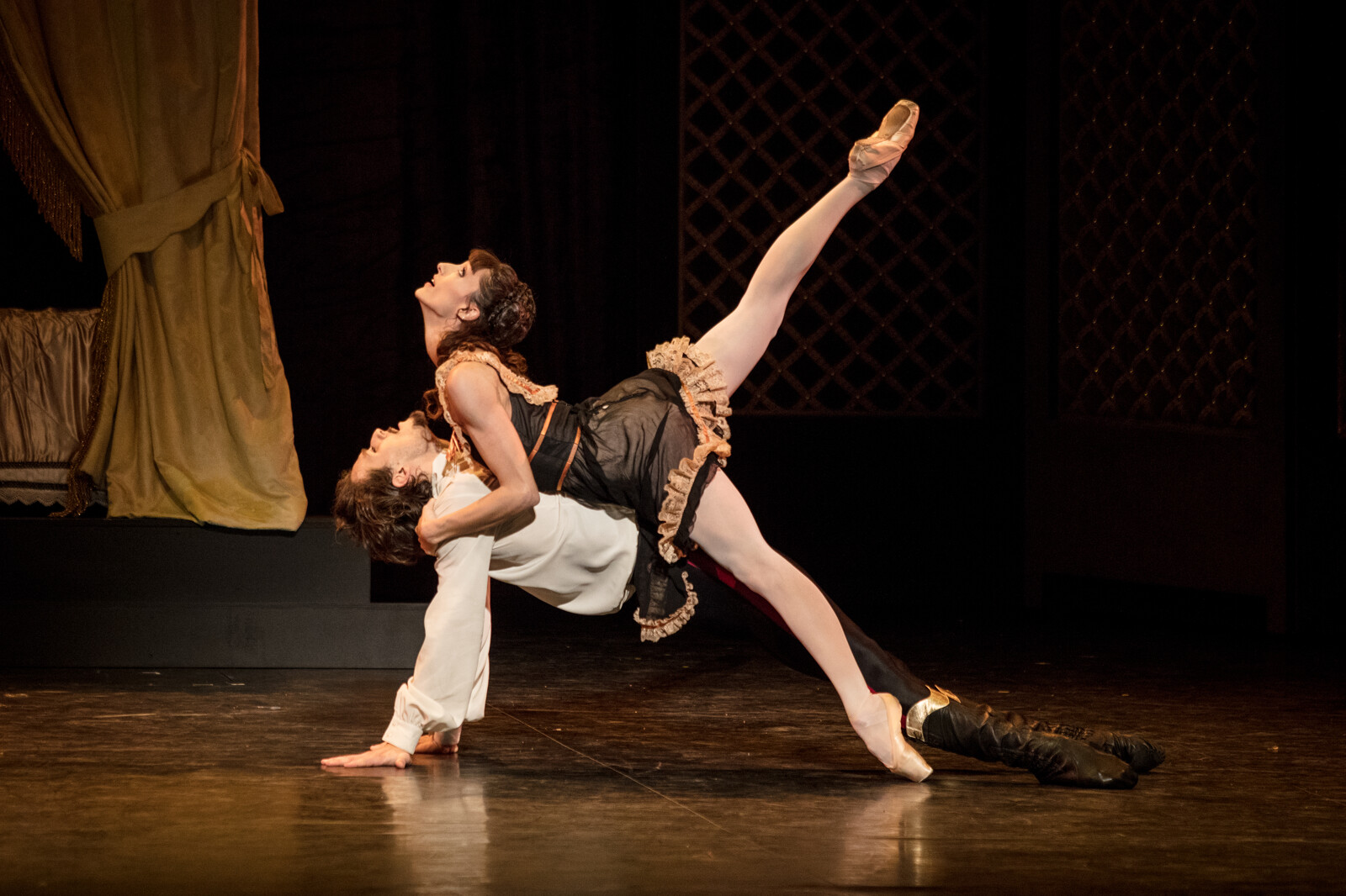 Lors de la première représentation, Hugo Marchand proposait une époustouflante incarnation de Rodolphe, embrumé dans un mal être qui le jetait au bord des larmes, alors qu’il accomplissait des solos acrobatiques et formait avec Silvia Saint-Martin (Stéphanie) et Dorothée Gilbert (Mary) un couple sulfureux, magnifié par des duos d’une violence brûlante, emprunts de classicisme mais rompus à la danse moderne avec des prises de risque maximal. D’une sensualité animale, d’une prouesse technique magistrale, la danse de McMillan nous projette dans un cinéma permanent, dont l’emphase, la grandiloquence, ne sont là que pour mieux faire transparaître la force du désir, l’aiguillon du mal-être et le tourbillon des sentiments.