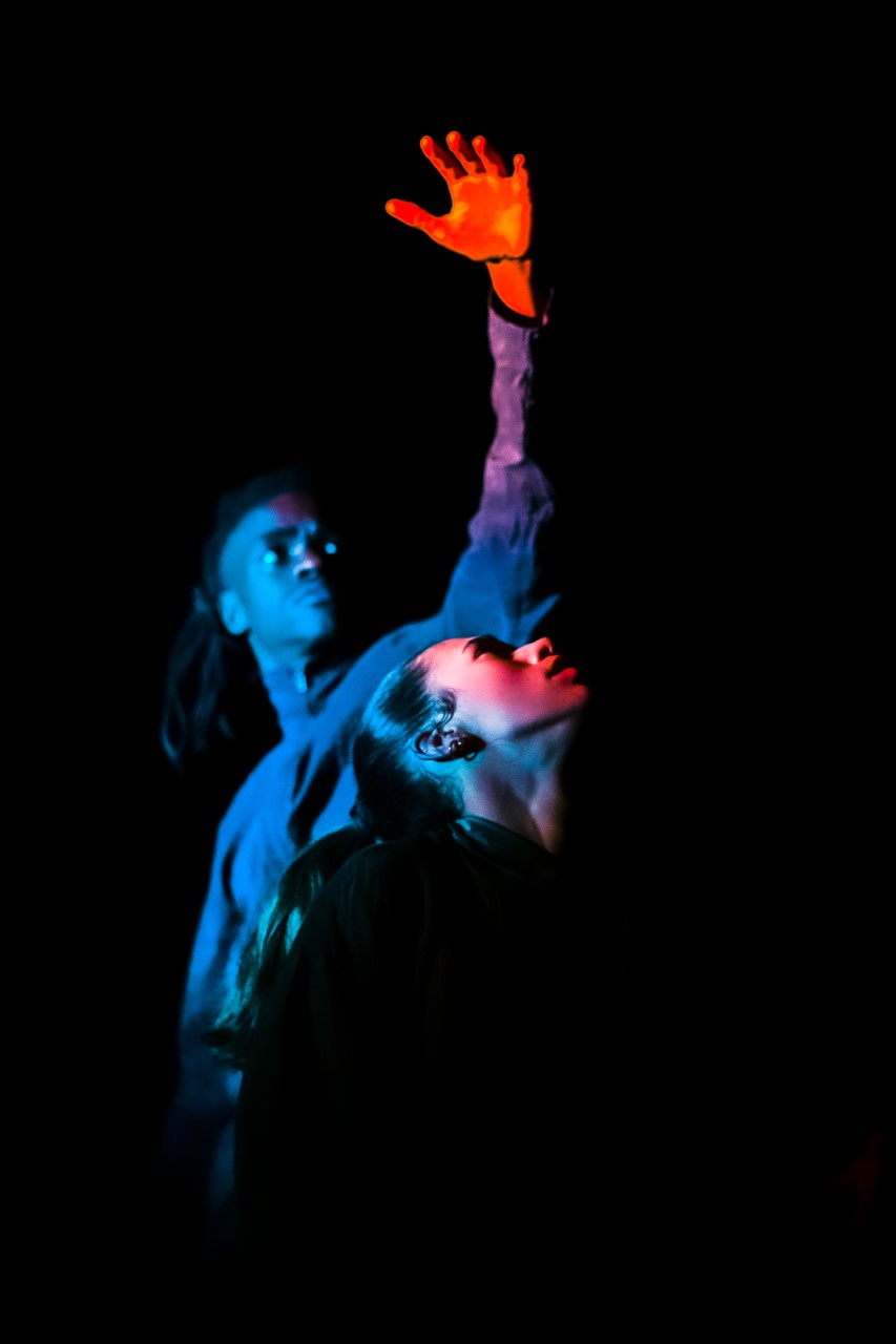 Sur scène, c’est en réalité un véritable quatuor auquel nous avons affaire. En effet, la musique et la lumière tiennent une place centrale dans la pièce. La musique composée spécifiquement par Sylvain Bajgar vient épouser à la perfection les mouvements des deux danseurs. C’est d’ailleurs la première fois qu’ils travaillent avec un compositeur pour une de leurs créations. Quant à la lumière – le seul élément de scénographie, créé par Judith Leray –  elle prend aussi une place importante dans l’histoire que Brandon et Laura nous content puisqu’elle représente l’arrivée de leur fille : un chamboulement non seulement dans leurs vies mais aussi dans le processus de création de cette pièce.