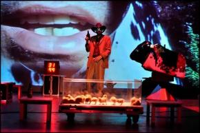 Toute la liberté de R. Garcia est porté avec les excès de l’auteur que l’on connaît auxquels s’ajoute une dimension d’humour à la Tarantino. Son dernier spectacle à Paris avait suscité manifestations et contestations au point de demander des renforts aux CRS pour que les spectateurs puissent entrer sans risques. C’était au Théâtre du Rond-Point en 2011 avec Golgota Picnic. Les instruments habituels de Rodrigo Garcia envahissaient la scène, à savoir corps nus, sexe, violence, sons et bruitages poussés à l’extrême, ingérence de nourriture jusqu’à l’écoeurement, vidéos vertigineuses, etc. Mais avec la pièce Muerte y reencarnacion en un cow boy, la polémique est évitée car le sujet ne touchant pas directement à la religion, la mobilisation opposante n’a pas eu lieu et le rire en questionnement cloue le bec aux détracteurs sinistres. Il faut donc se mobiliser pour juste courir et participer à la présentation de cet objet théatral où se côtoient la force humaine tant dans ses pulsions destructrices que ses capacités les plus libératrices.