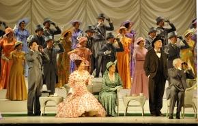 Dans des décors assez sobres, qui rappellent les tendances art déco des années 1930, les chorégraphies sont réglées au millimètre et rejouent la lutte des classes : les classes bourgeoises dansent avec sobriété et retenue (la gavotte d’Ascot en est la plus belle réussite), tandis que les classes populaires le font avec exubérance et joie de vivre. Pour accompagner ces chorégraphies, l’orchestration reste sans surprise, ce qui place cette production dans la parfaite lignée du musical de Broadway. Quant aux voix, elles rendent justice au chef-d’œuvre de Loewe et Lerner – avec une mention particulière pour Donald Maxwell, qui interprète un Alfred Doolittle truculent à souhait.