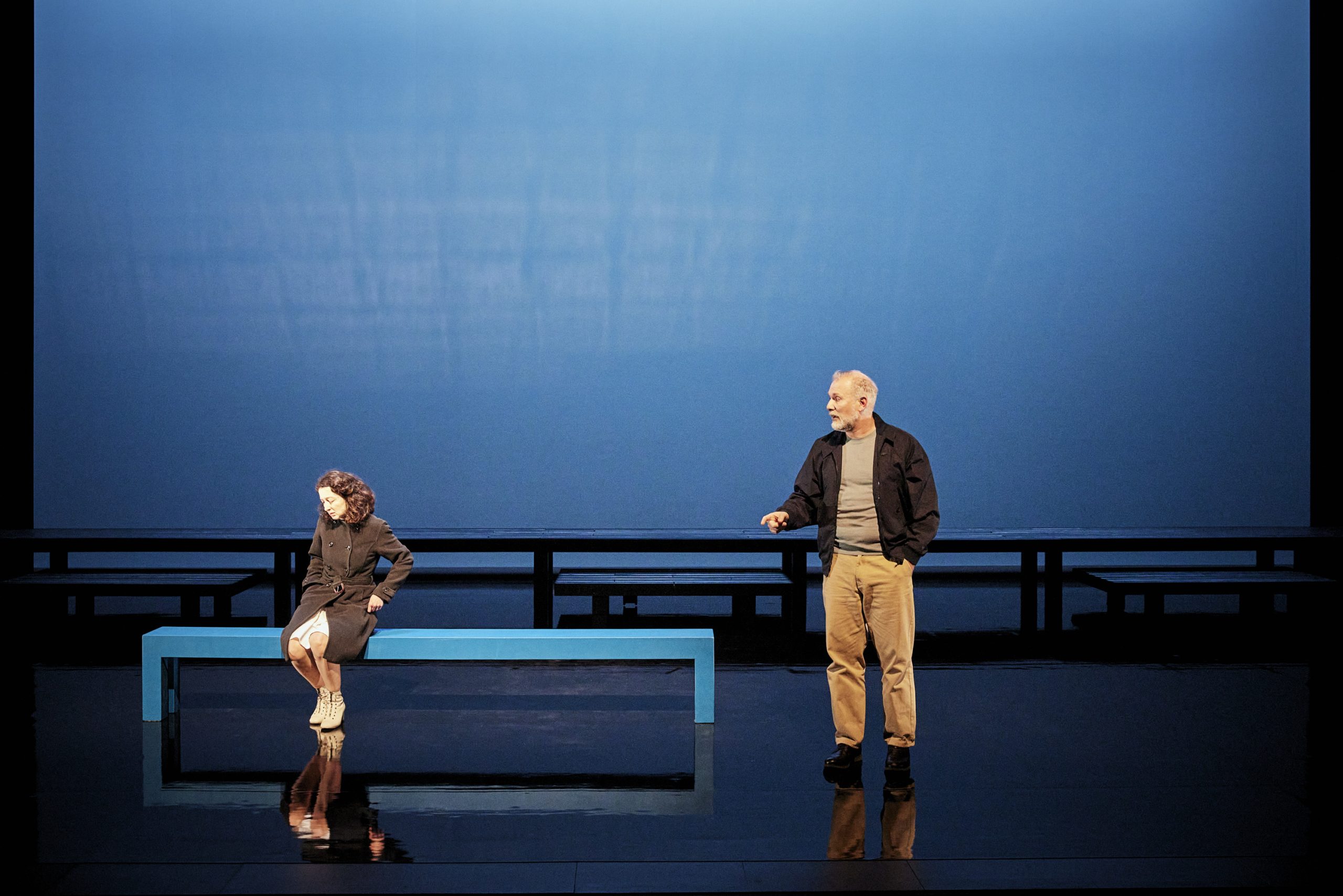L’intelligence de la scénographie déploie un espace de jeu très libre sur un plateau qui miroite d’une laque sombre, traversée en fond de scène par une jetée qui part des deux côtés. L’eau, aussi le symbole de l’inconscient, envahit tout le plateau bleuté et dépouillé. Les acteurs sont donc pleinement exposés dans cette lumière chaude, coupante, des grandes contrées scandinaves. Pas de frontière ni de mur, d’espace clos ni de refuge, ce qui permet au spectateur de saisir au plus près les tourments des personnages. Dans le rôle du père, David Clavel est formidable d’intensité et de perplexité, traversé en permanence d’élans contradictoires et mû par un absolu idéal. Son épouse, Rita, est incarnée par Sophie Rodrigues, attachante, extravagante et sensuelle, d’une franchise terrible. Le metteur en scène les a habillés de manière actuelle, ce qui rend le couple vibrant de naturel et de spontanéité. Les retrouvailles n’ont besoin d’aucun meuble, les corps se retrouvent à même le sol, sur un tapis chatoyant. Constance Larrieu, plus effacée, campe l’énigmatique Asta, qui semble être le réceptacle des passions du couple. Dans le personnage de la Dame aux rats, Nadine Berland est redoutable, presque trop propre pour un personnage effrayant, alors que Muriel Martinelli joue le jeune Eyolf aux yeux effarés. Enfin, Maël Besnard campe Borgheim, pacifiste observateur de ce drame aux résonances fantastiques, qui annonce la révolution de la psychanalyse. Un théâtre de personnages à l’humanité déchirée, traversé de sentiments complexes, d’une modernité totale.
