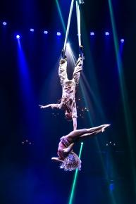Ce sont les jeunes acrobates qui ont eu beaucoup de succès. On retiendra la magnifique prestation de Dasha et Vadim, deux tout jeunes artistes extrêmement performants et rigoureux. Leurs corps dessinent des lignes très pures dans l’espace. Ils s’enlacent et se défont dans une chorégraphique poétique qui n’est pas sans danger. On adore les frères Curatola : deux acrobates sympathiques et exemplaires très robustes. Et pour finir Pasha Voladas aux barres fixes, un charme fou, sans doute un ex-athlète de haut niveau. Il vole tout simplement de barre en barre : époustouflant !