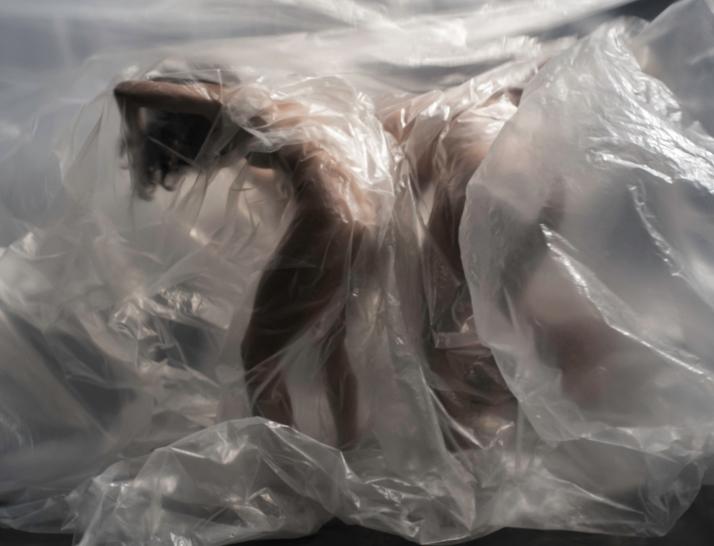 Qui s’épuise plus? Celle qui glisse et chute sur des roches, imaginaires? Ou bien les huit agitateurs de bâche, répartis en deux équipes de quatre ? Ce sont eux qui poussent les cris de frayeur, c’est leur émotion qui contamine le public. Le bruissement du plastique est leur œuvre. La fille en dérive devient comme leur marionnette, qui pourtant leur échappe. Sont-ils venus la secourir, ou avons-nous assisté à un “Sacre” aquatique? Au bout du compte, tout le monde se tait. La noyade a eu lieu. Le premier acte s’achève.