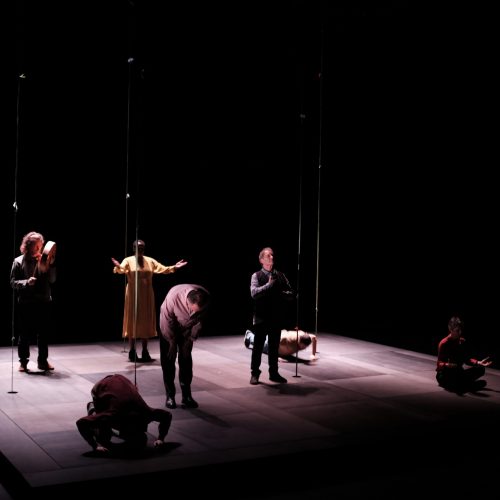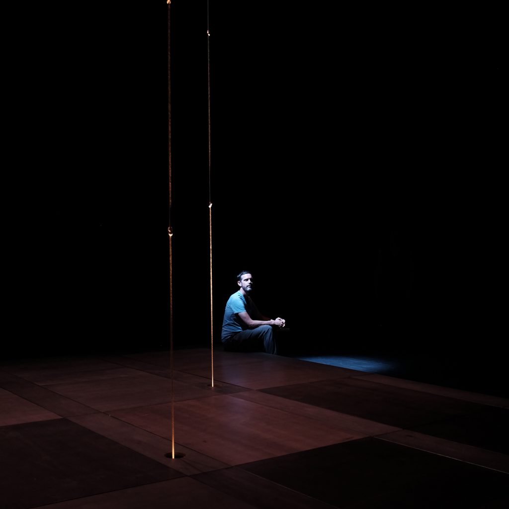 Ils sont sept, deux femmes et cinq hommes, sur un plateau noir, suspendu par de fines cordes à nœud qui vont peu à peu s’embraser de lumière. Grace Gatibaru ouvre le bal, déesse noire splendide dans sa robe de soleil, qui raconte son parcours spirituel semé de deuils et de maturation personnelle, du Kenya à la France, pour devenir pasteur protestant. Ses mots sont ceux de l’enfance et d’une maturité sereine, et les baskets qu’elle porte lui permettent de les projeter, innocents et sincères, sans aucun dogmatisme. La musique, mêlant l’électro et l’ethnique, soutient subtilement cette parole vibrante que Didier Ruiz a longuement travaillée avec ces témoins d’une vie. Marie-Christine Bernard, chemise rouge et jean tout simple, était religieuse. Sans aucun pathos, et avec une délicatesse infinie, elle raconte sa révélation adolescente, le choc avec sa famille, l’aspiration au don et à l’amour des autres, et le contact avec une divinité qui s’incarne dans le Christ. Elle le raconte avec une fragilité magnifique, pleine de doutes et d’étonnement, plantant dans nos yeux le bleu de ses pupilles incandescentes.