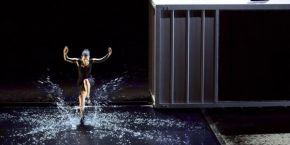 Le tableau final est spectaculaire. Un carré se remplit d’eau et le zapateado de Fuster fait jaillir des fontaines. Le son devient une manifestation matérielle, visible. Les coups de talons, dirigés vers la terre, rebondissent vers le haut, sous forme de jets d’eau. L’eau devient danseur, accompagné par un chanteur et un guitariste. Le flamenco renaît.
