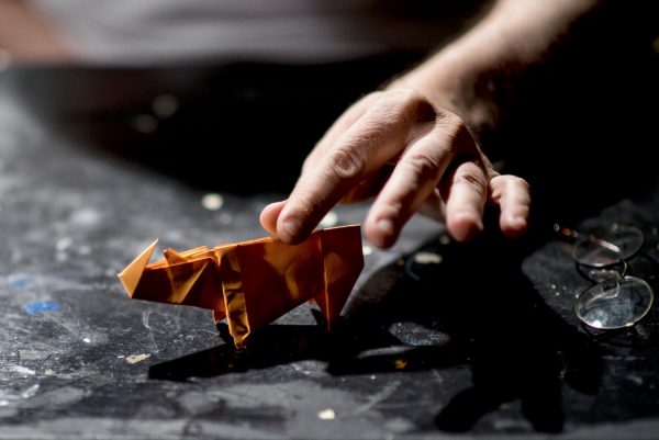 La salle suit la solitude progressive de Béranger, qui se retrouve bientôt être le dernier humain parmi ce troupeau de rhinocéros. Elle retient son souffle face à l’ultime questionnement de Béranger sur son humanité. La musique jouée au début de la pièce retentit de nouveau, le comédien reprend sa place initiale, recommence à plier le rhinocéros en papier et la pièce se termine. Ce dernier instant laisse en suspens le public qui à la fois se demande si cette fin est la répétition du début et l’incarnation de la résistance face à la transformation ; ou bien une métaphore de sa métamorphose.