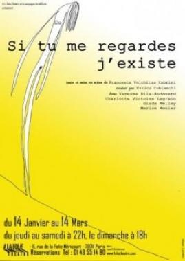 « Si tu me regardes, j’existe est un voyage entre rêve et réalité, entre le maintenant inhumain et rationnel de la maladie et les souvenirs époustouflants du temps perdu, temps enfantin bercé d’illusion et de gaieté ». Pour sa pièce qui est un acte-unique, l’auteur-metteur en scène italienne, Francesca Volchitza Cabrini, a choisi une esthétique minimaliste portée par divers accessoires, donnant l’illusion d’un décor nouveau et de personnages différents.