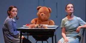 Pauline Bureau, avec sa scénographe Emmanuelle Roy, organise un espace suspendu entre rêve et cauchemar, en apesanteur, avec des vidéos et des images projetées. Marie Nicolle est d’une présence haletante et fragile dans le rôle d’Aurore, face à une Catherine Vinatier (Hélène) formidable d’humanité blessée. Nicolas Chupin fait chavirer de rire le public avec l’histoire de la petite sirène et Yann Burlot, Anne Rotger, Géraldine Martineau, Philippe Awat et Vincent Hulot complètent une belle distribution dans cette création collective à l’écriture musicale.
