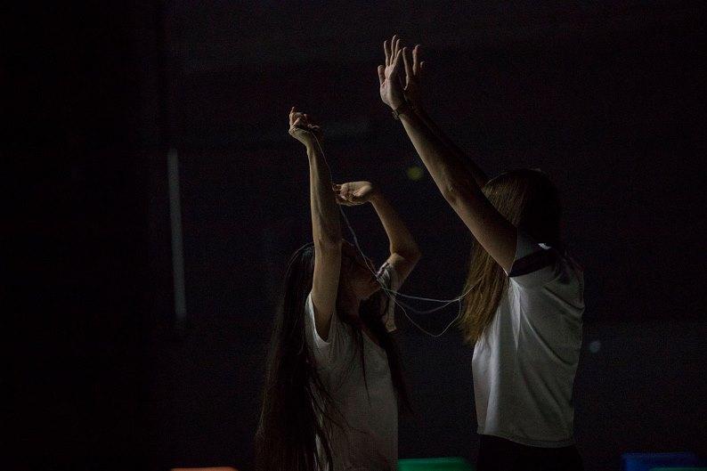 Pascal Rambert a eu la certitude de vouloir écrire pour elles ce duo, alors qu’elles répétaient sa pièce Actrice. C’est que Marina Hands et Audrey Bonnet ont toutes deux des statures de comédiennes sans aucun doute à la mesure de cet auteur qui régulièrement est inspiré par des tempéraments d’interprètes auxquels il reste fidèle. C’est bel et bien leur époustouflante force de combattantes qui fait ressortir de bout en bout le caractère démesuré de Soeurs. Egalement metteur en scène, Pascal Rambert les pare d’une tenue vestimentaire sans joliesse, soulignant ainsi la puissance organique qui surgit à travers leurs corps fragiles et sensuels, rehaussés de leurs chevelures qui tournoient le temps d’une danse. Revenant au matériau essentiel du théâtre, corps et voix, il laisse à ses comédiennes toute la place, ne disposant sur le plateau que de multiples chaises multicolores parmi lesquelles elles avancent, elles se dressent prêtes à bondir, puis s’effondrent et repartent.