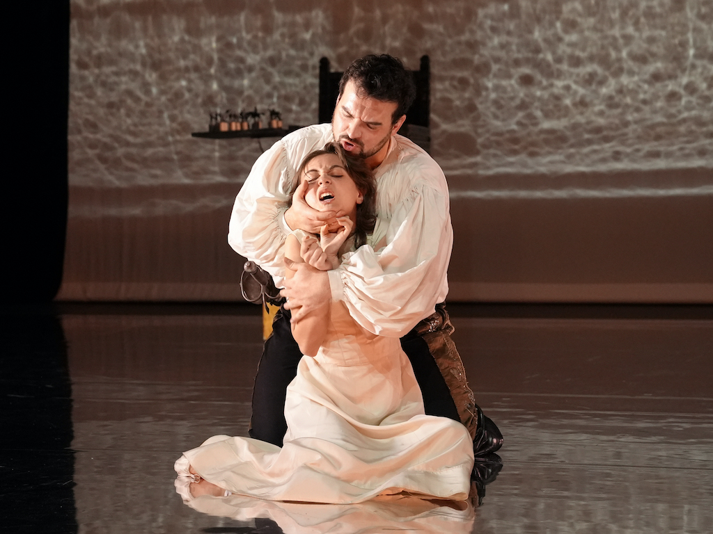 Frédérique Lazarini a l’intelligence de monter la pièce dans un décor somptueusement épuré, à l’esthétique élégante et raffinée signée François Cabanat. La mise en scène inscrit l’action dans une temporalité ouverte, dans des lumières orientales et méditerranéennes. La distribution est concentrée autour de six comédiens au talent remarquable, vêtus de costumes stylisés et qui n’économisent pas leur énergie. Le vieux Don Diègue, outragé par le soufflet et la jalousie de son rival Don Gomes, est campé par Philippe Lebas qui donne à ce personnage, trop souvent caricaturé de manière poussiéreuse, une humanité lumineuse et virile. Quelle belle prestation le comédien nous offre-t-il, en défendant la paternité chaleureuse d’un père qui crie à la vengeance ! Bien sûr, l’acte de vengeance, qui passe par l’épée du fils, s’apparente totalement à la vendetta qui a encore cours aujourd’hui dans les pays du Sud. Mais ce père est tout entier acquis à laver cet affront, et son fils Rodrigue, qu’incarne Arthur Guezennec, s’empare avec une belle fureur de cette charge. Grand gaillard sportif, excellent escrimeur et comédien à la technique accomplie et au physique avantageux, ce dernier parvient à faire du héros un personnage attachant et entier, brisé par la douleur de son père et par son amour pour Chimène.