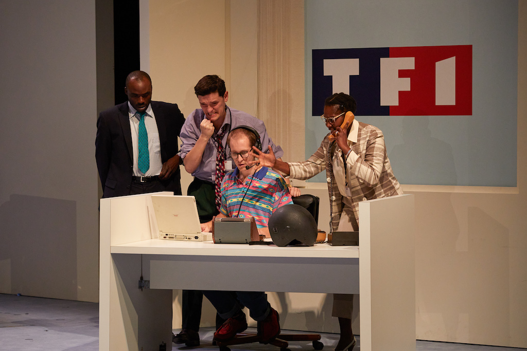 Au Théâtre de la Ville, l’auteur et metteur en scène Thomas Quillardet propose une formidable saga autour de la privatisation de TF1 et la guerre des images que provoque la naissance des chaines d’information. Un petit air de nostalgie qui part de la télé de papi aux transformations modelées par le désir du public. Une joyeuse troupe de onze comédiens nous embarque sans un temps mort : à découvrir d’urgence.