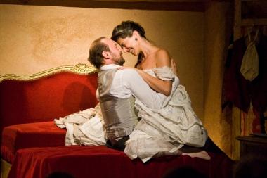 Emanation romantique de taffetas et mobilier d’antan, la scène n’est autre que la chambre dans laquelle Juliette attend cloîtrée, et l’on apprécie que tout s’y joue. C’est alors que dans un décor qui n’aurait  pu sonner plus juste, Anthéa Sogno et Sacha Petronijevic emploient une énergie admirable à la résurrection du couple incarné. Tandis qu’Anthéa Sogno incarne non sans jubilation les soubresauts d’une Juliette Drouet oscillant entre excitation enfantine et désespoir de femme, Sacha Petronijevic réussit à imposer un Victor Hugo charismatique, digne, mesuré dans la gestion des transports amoureux qui le troublent pourtant.  Grâce à ce sans faute, l’illusion prends corps à la comédie Bastille, et l’on est chaviré, dans un romantisme qui ne pouvait être mieux réhabilité qu’à travers ce retour sur l’amour vécu par son chef de file.