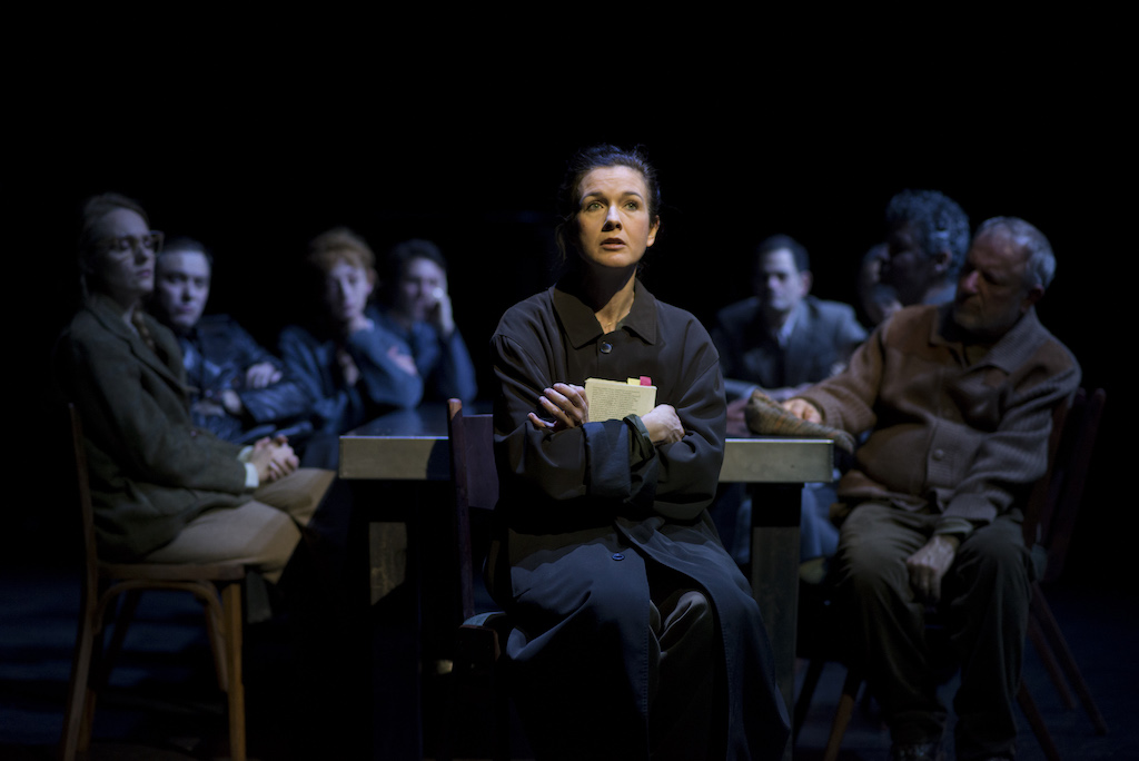 « Tout part du livre et revient au livre ». Brigitte Jaques-Wajeman part de cet intelligent credo pour déployer une mise en scène simple et juste, qui fait la part belle à des comédiens, pour nous embarquer littéralement dans toutes les strates de la société russe. Autour du héros se tient Mostovskoï, un vieux bolchévique qui a connu les prisons tsaristes et qui a été fait prisonnier dans un camp allemand. Pierre-Stéfan Montagnier incarne le vieux loup soviétique avec une roublardise et une malice délicieusement infernale, mais sincèrement fidèle à ses idéaux révolutionnaires et lucide quant à la prise de pouvoir de Lénine. Alors qu’un officier nazi lui démontre avec une rigueur scientifique que le régime bolchévique poursuit les mêmes buts, avec les mêmes moyens, que le régime nazi, le vieux soviétique. Cette scène poignante, qui tisse avec une précision maniaque la comparaison entre nazisme et stalinisme, est incarnée par le flamboyant Thibault Perrenoult, aussi machiavélique dans le rôle du nazi que pitoyable et tragique dans celui de Krymov, le beau frère de Sturm, ancien commissaire politique durant les purges staliniennes, qui a gardé le silence face à l’horreur de cette répression sanguinaire, au nom des idéaux du parti, et qui est maintenant dénoncé et arrêté par ceux-là même qu’hier il traquait.