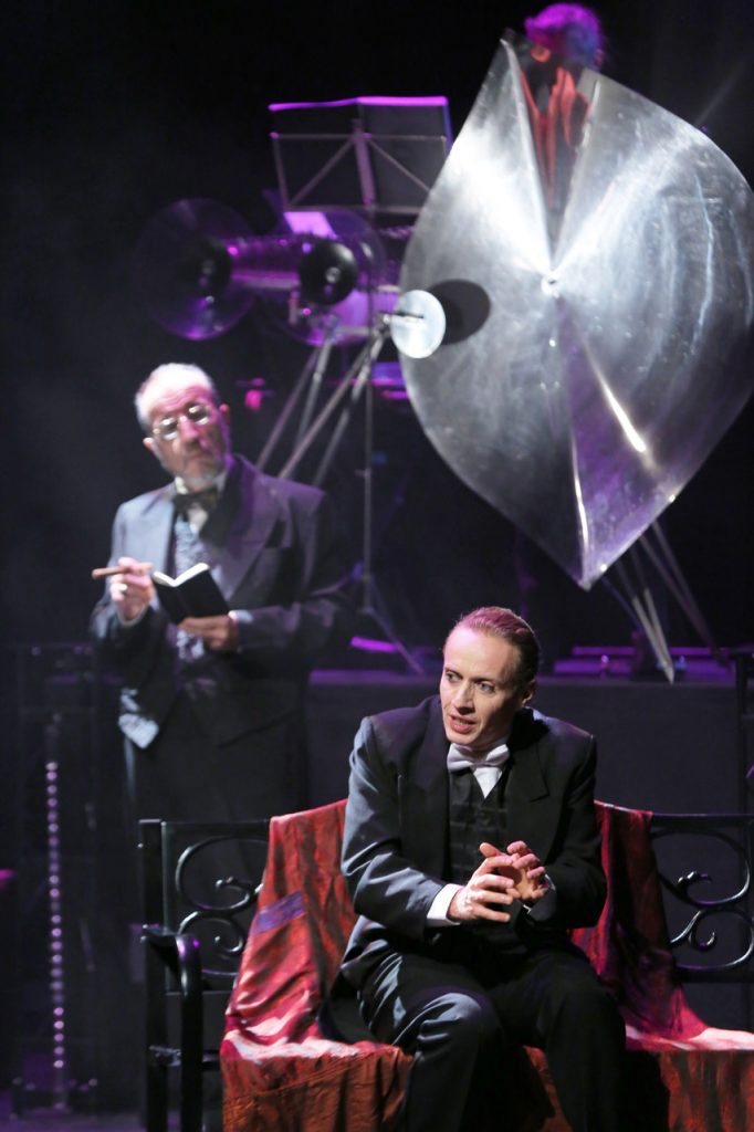 Il y a là Hugo Von Klast, interprété par William Mesguich, jeune aristocrate tourmenté par un antisémitisme obsédant, qui vient consulter le docte Sigmund Freud, joué par Jean-Luc Paliès. Nous voyons donc comment les prémices des idées d’extrême droite des cercles de la haute société viennent percuter celles d’un jeune artiste égaré et pauvre, Adolf Hitler (Oscar Clark) que la mère d’Hugo (Claudine Fievet) prend sous son aile. Un prêtre (Alain Guillot), une jeune fille amoureuse d’Hiler, Molly (Nathalie Lucas) forment ce microcosme qui concentre toutes les passions, les révoltes, les frustrations et les haines, terreau du nazisme. Dans une scénographie impressionnante de majesté et de terreur, les comédiens tous épatants nous racontent aussi de quelle manière c’est bien la liberté, le désir et le corps des femmes, que peint avec richesse Gustav Klimt, qui viennent déranger ces hommes meurtris par l’impuissance et la perte de sens. Grandiose et lumineux.