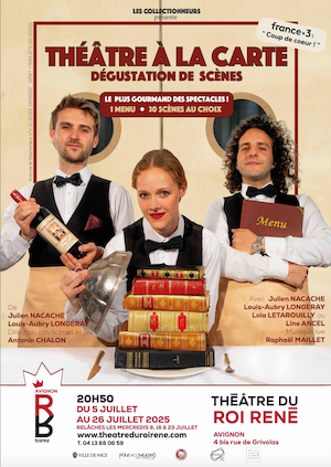 Bienvenus dans notre restaurant littéraire inédit. Laissez-vous tenter, le temps d’une soirée gourmande, en famille ou en amoureux, par le menu Découverte Théâtre ventilé en six services élaborés par les suggestions avisées du Chef : cassolettes d’auteurs cultes, assortiments...